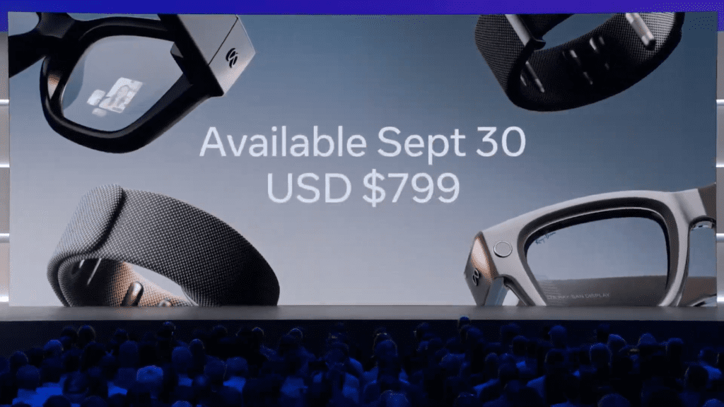 These glasses are priced at $799 USD, which includes both the glasses and the Meta Neural Band. They will officially launch on September 30, 2025, in the U.S. and will be available at retailers like Best Buy, LensCrafters, Sunglass Hut, and Ray-Ban stores. International expansion is expected in 2026, with availability in Canada, France, Italy, and the UK.
